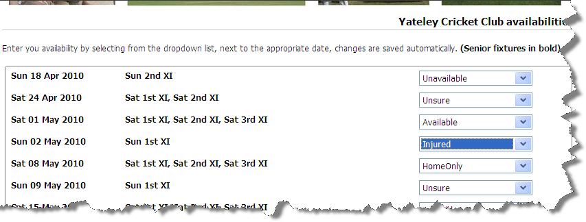 You will then see a list of all days when there are fixtures for teams of which you are listed as a player - you can then use the option on the right hand side to indicate your availability: